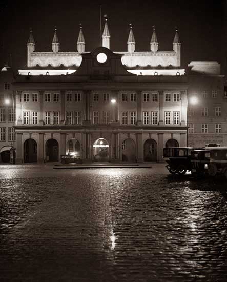 Das Rathaus während der Lichtwoche 1928.