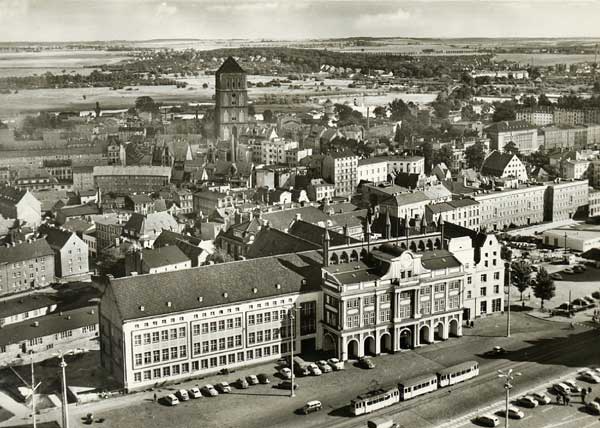 Rathaus und östliche Altstadt um 1960.
