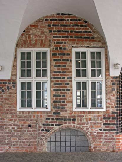 Die Wand unter der Laube kündet noch von der ursprünglichen Pracht.
