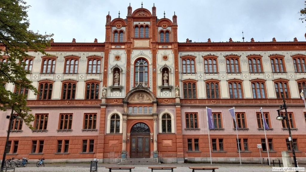 Das Neue Museum, links vom späteren Universitätsneubau errichtet, entstand im Jahre 1844, und wieder war es Demmler, der die Pläne lieferte. Zur Bauzeit stand dort noch das so genannte Weiße Kolleg. In den Jahren 1867 bis 1870 wich es dem Bau des heutigen Universitätshauptgebäudes im Stil der italienischen Renaissance. Die Entwürfe lieferte der Schweriner Hofbaurat und Architekt Hermann Willebrand. Anregungen holte sich der Baumeister zum Beispiel am Wismarer Fürstenhof, den Renaissanceflügeln des Schweriner Schlosses – und aus Venedig von der Scuola Grande di San Marco. Das Ergebnis der daraus folgenden Schöpfung des Architekten war ein wahrlich prächtiges Bauwerk, das die Westseite des heutigen Universitätsplatzes bis heute prägt.