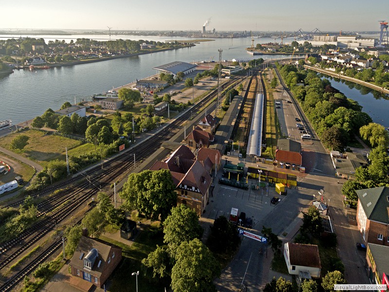 Mit dem Bau des neuen Bahnhofs wurde eine Querung des Alten Stroms erforderlich. So wurde parallel zu den Bahnhofsbauten eine Drehbrücke errichtet. Sie blieb bis heute erhalten und wurde ebenfalls ein Baudenkmal.